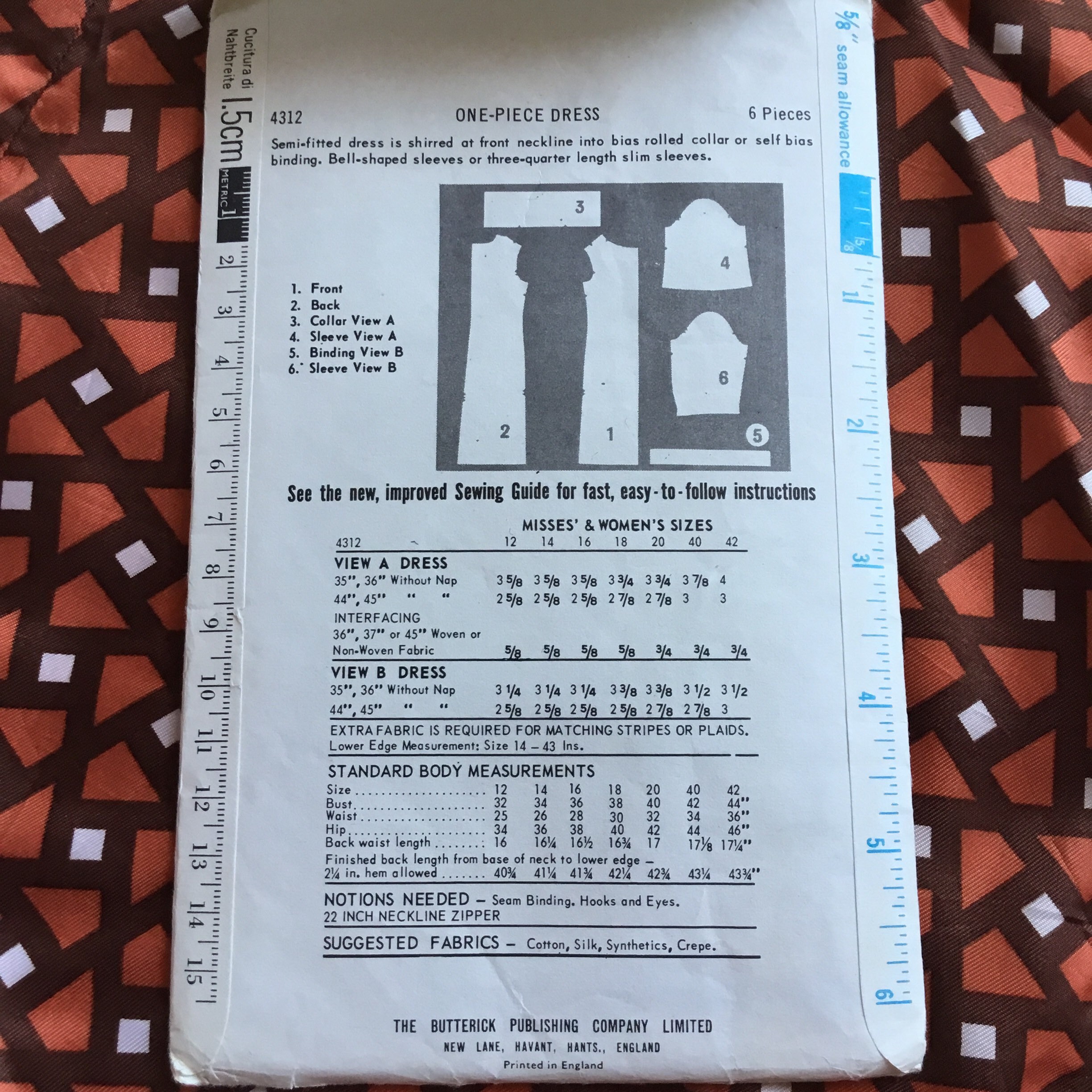 Vintage Dress Pattern Butterick Easy 4312 Bust 42 To Fit Etsy Canada