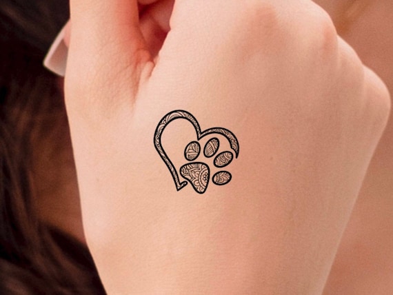 Paw Print Heart Temporary Tattoo Dog Print Tattoo Mandala Etsy Australia