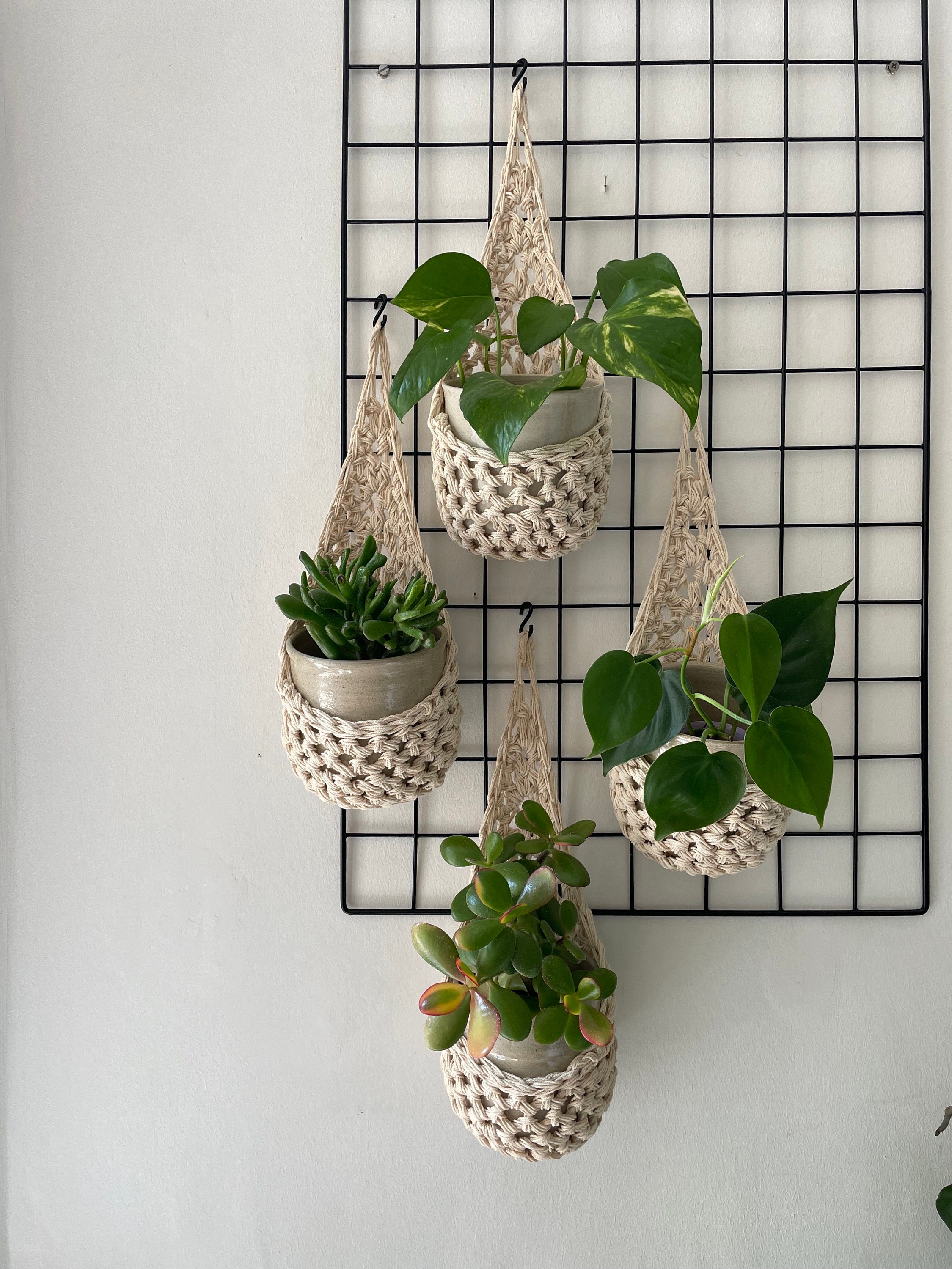 Large Cream Cotton Wall Hanging Planter Handmade Crochet Eco Etsy Hong Kong